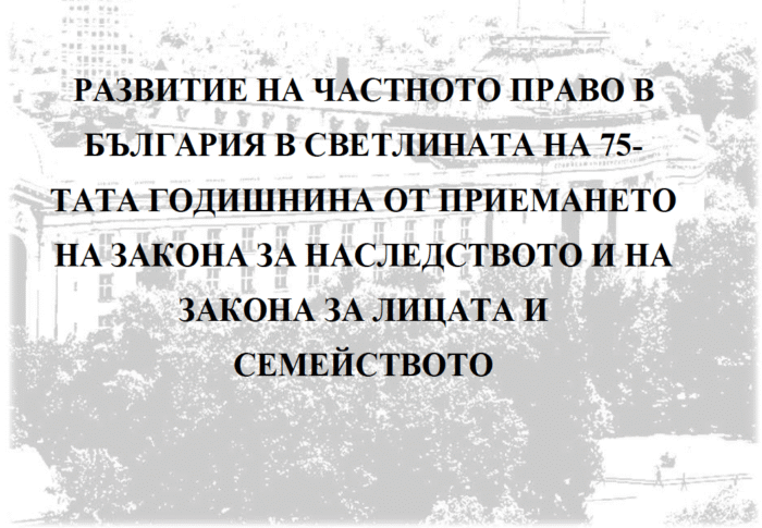 Коференция по повод 75 години от приемането на Закона за наследството и на Закона за лицата и семейството