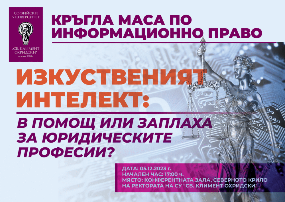 Кръгла маса по информационно право „Изкуственият интелект: в помощ или заплаха за юридическите професии?“ – 5.12.2023 г.