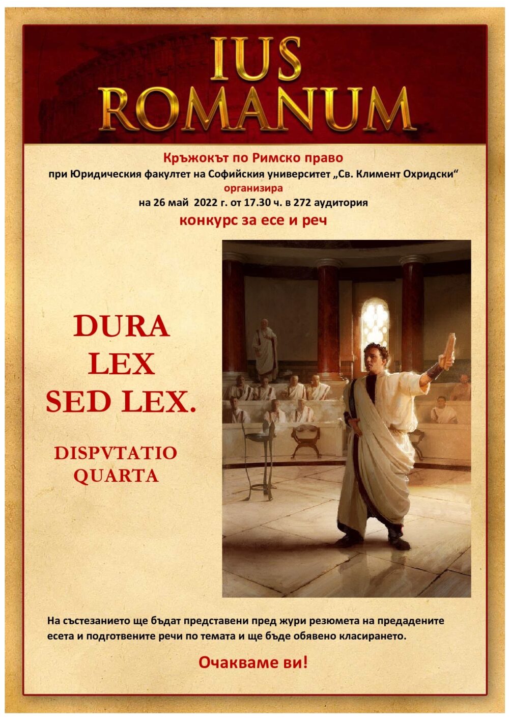 DURA LEX SED LEX – римскоправен конкурс за есета и речи – 26.05.2022 г.