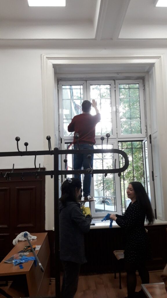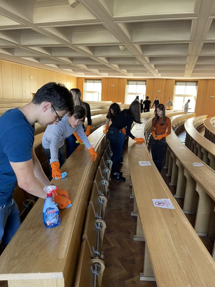 На 9 Октомври студенти и преподаватели от Юридическия факултет, организирани от Факултетния студентски съвет, почистиха основните учебни аудитории на Факултета за началото на новата учебна 2022/2023 г.