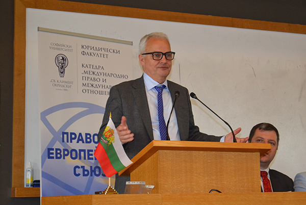 По думите му в момента правото на Европейския съюз и самият Европейски съюз преживяват предизвикателни времена. Това предполага ясно виждане за бъдещия процес на интеграция. Той посочи, че много от докладите на събитието са посветени на въпроса как правото на ЕС трябва да се развива днес и в бъдеще. Така семинарът ще се превърне в място на полезен дебат по много важни теми. В заключение той отправи своята благодарност към всички, помогнали за организирането на конференцията.