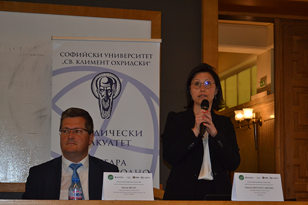 Доц. Мария Фъртунова-Мишел от Университета на Лотарингия също поздрави всички гости и участници в конференцията. Тя благодари на организационния комитет на събитието и изтъкна, че за нея е чест да допринесат за дебата по важни теми в Европейския съюз. По думите й тази конференция е доказателство, че сътрудничеството между Софийския университет и Европейския университетски център към Университета на Лотарингия, Франция, имат голямо бъдеще под формата на разнообразни научни изследвания.